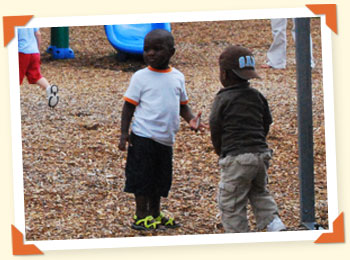 Our babies are challenged everyday to use, enhance and improve their fine motor skills (crawling, stretching, reaching, etc.) They are given plenty of organized floor play and one on one play time with the teachers. We love to read books, sing songs and cuddle. Our center provides our infants with their own individual crib labeled with their name, sheet and blanket, refrigerator with labeled cubbies inside to keep bottles separated, bibs, washcloths, bowls and spoons. Our classroom is also furnished with infant swings, bouncy chairs, jumper-roo's, walkers, and tons of fun toys. Our babies also take walk around the grounds.